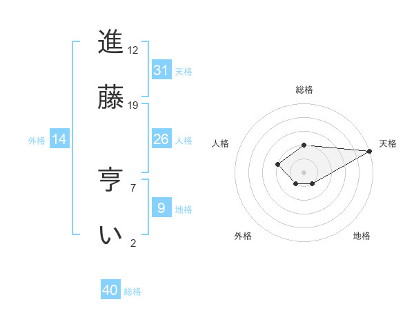 進藤 亨いさんの天格は31画の5点!