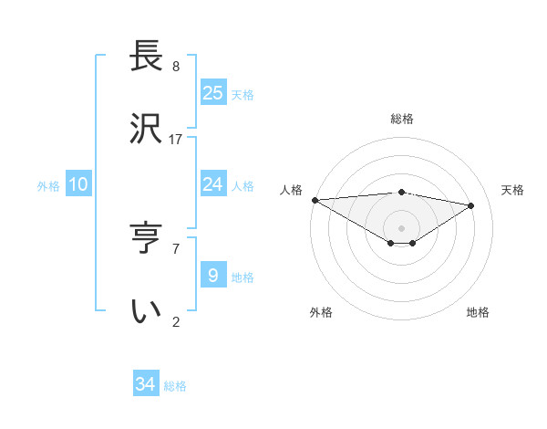 長沢 亨いさんを姓名の画数から五運を鑑定