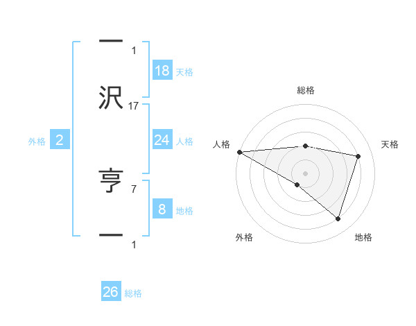 一沢 亨一さんを姓名の画数から五運を鑑定