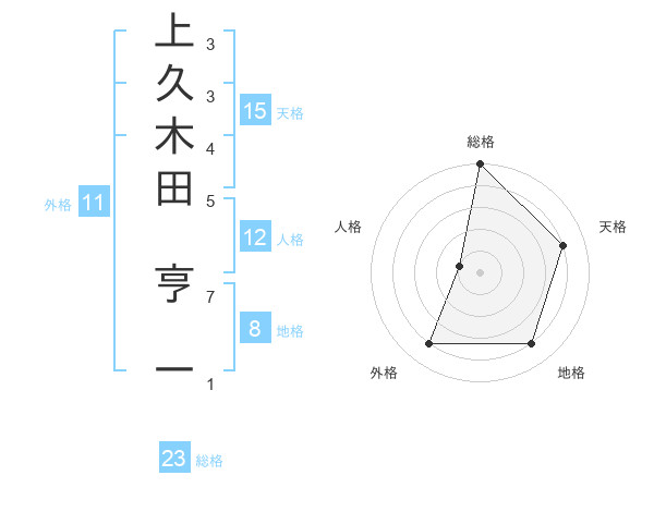 上久木田 亨一さんを姓名の画数から五運を鑑定
