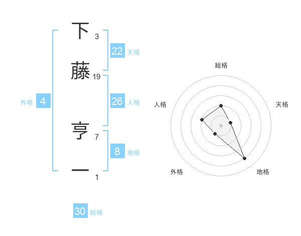 下藤 亨一さんの地格は8画の4点!