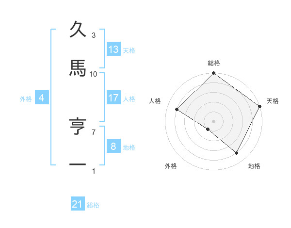 久馬 亨一さんを姓名の画数から五運を鑑定