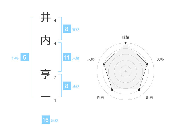 井内 亨一さんの地格は8画の4点!