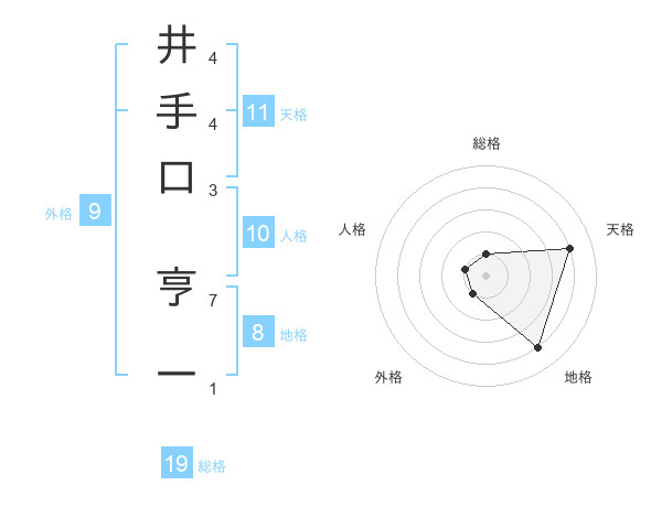井手口 亨一さんの地格は8画の4点!