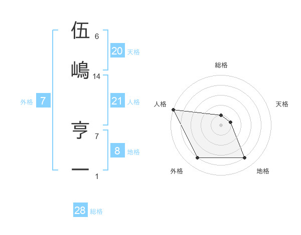 伍嶋 亨一さんの総格は28画の1点!