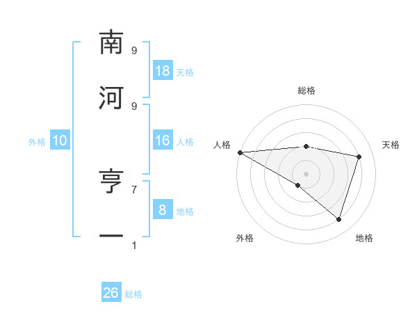 南河 亨一さんの天格は18画の4点!