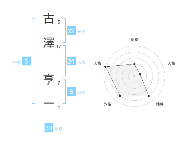 古澤 亨一さんを姓名の画数から五運を鑑定