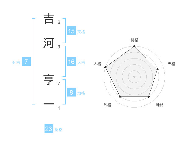 吉河 亨一さんの総格は23画の5点!