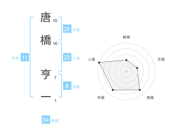 唐橋 亨一さんの総格は34画の2点!