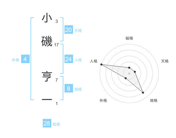 小磯 亨一さんを姓名の画数から五運を鑑定