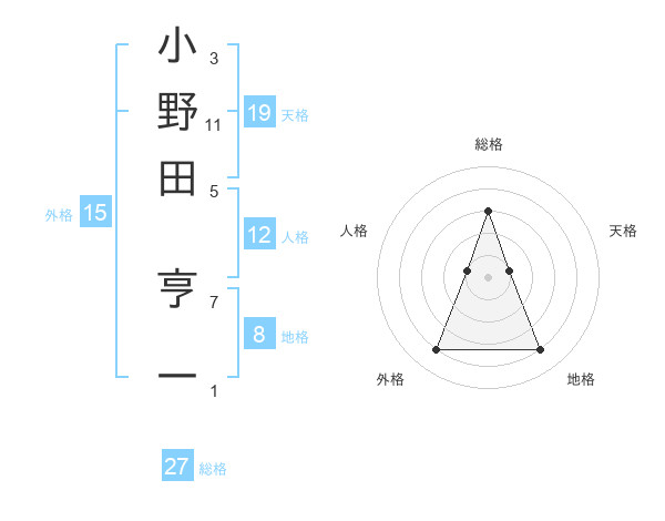 小野田 亨一さんを姓名の画数から五運を鑑定