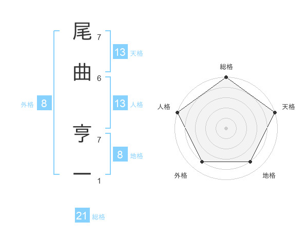 尾曲 亨一さんを姓名の画数から五運を鑑定