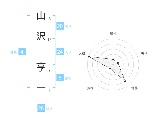 山沢 亨一さんの地格は8画の4点!