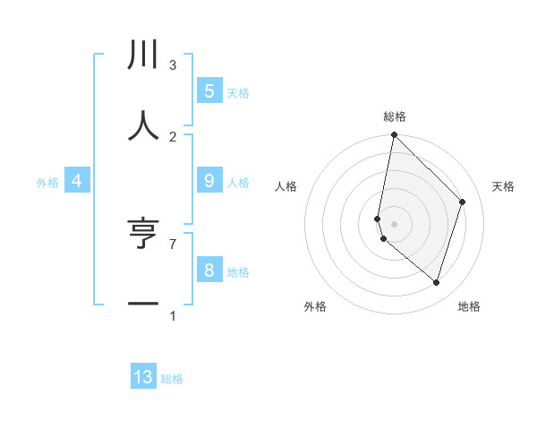 川人 亨一さんの総格は13画の5点!