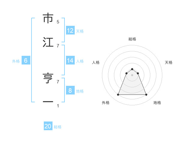 市江 亨一さんの総格は20画の1点!