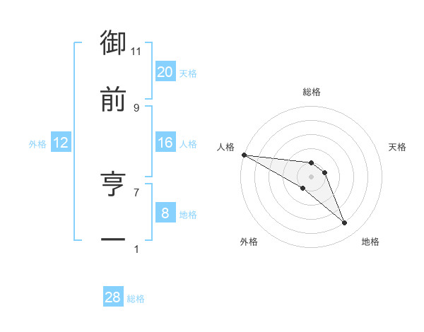 御前 亨一さんの地格は8画の4点!