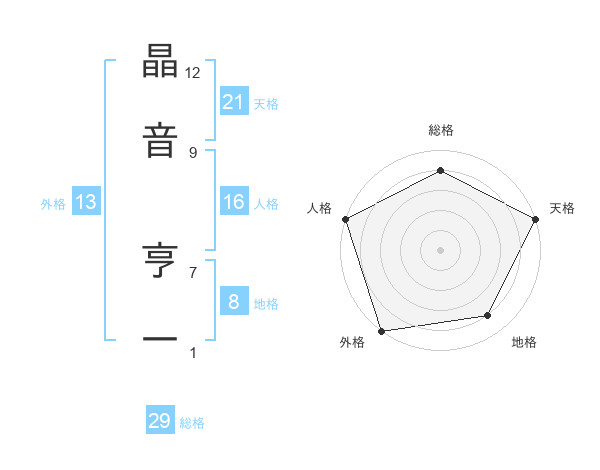 晶音 亨一さんを姓名の画数から五運を鑑定