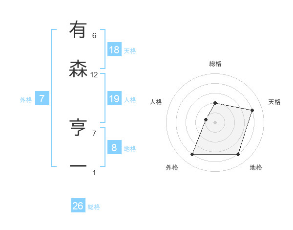 有森 亨一さんの外格は7画の4点!
