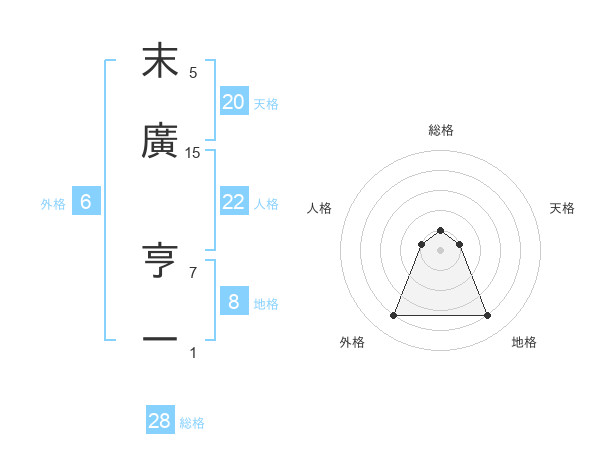 末廣 亨一さんを姓名の画数から五運を鑑定