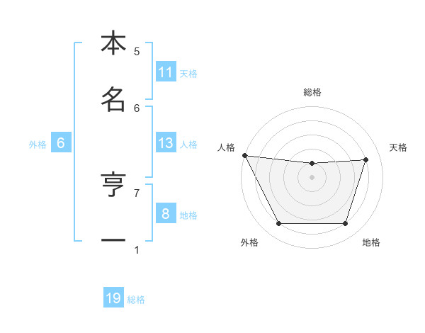 本名 亨一さんの天格は11画の4点!