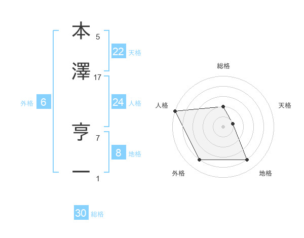 本澤 亨一さんを姓名の画数から五運を鑑定