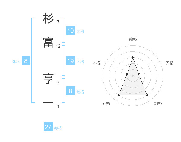 杉富 亨一さんを姓名の画数から五運を鑑定
