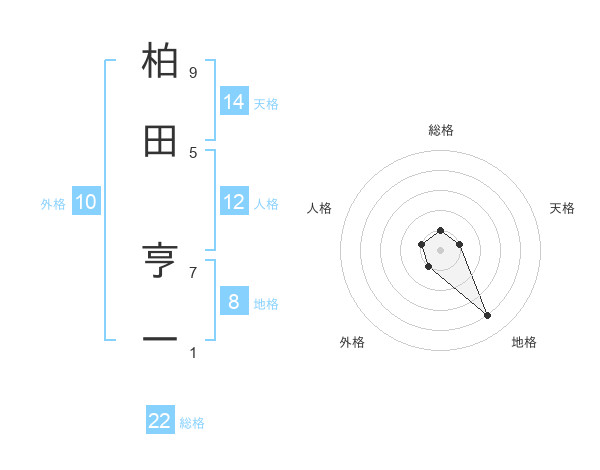 柏田 亨一さんを姓名の画数から五運を鑑定
