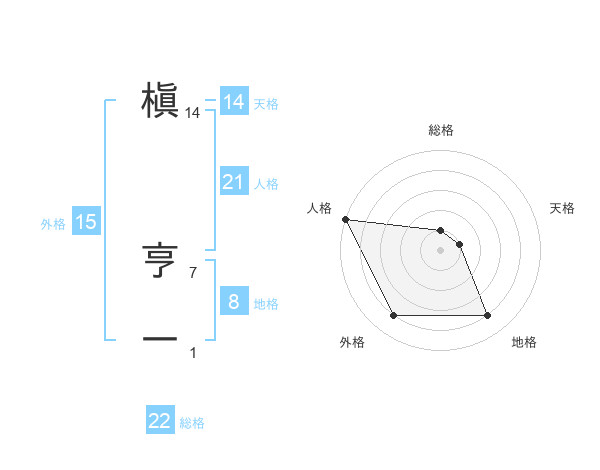 槇 亨一さんの総格は22画の1点!