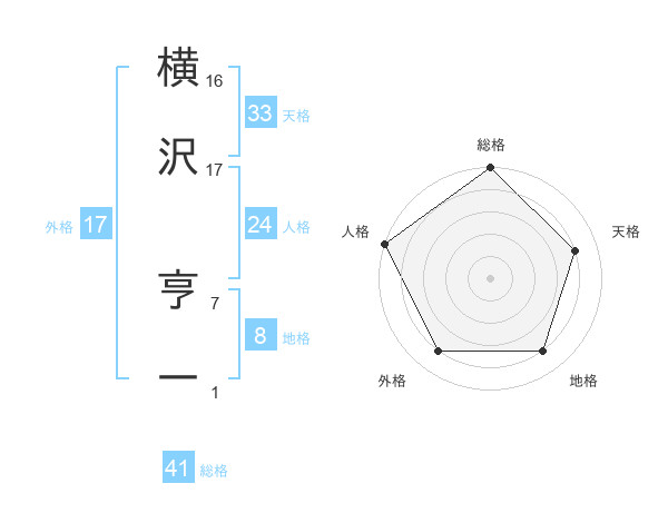 横沢 亨一さんを姓名の画数から五運を鑑定