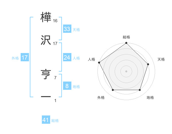 樺沢 亨一さんの外格は17画の4点!
