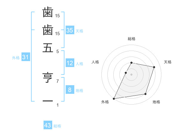 歯歯五 亨一さんを姓名の画数から五運を鑑定