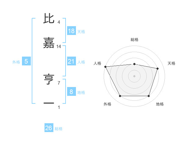 比嘉 亨一さんを姓名の画数から五運を鑑定