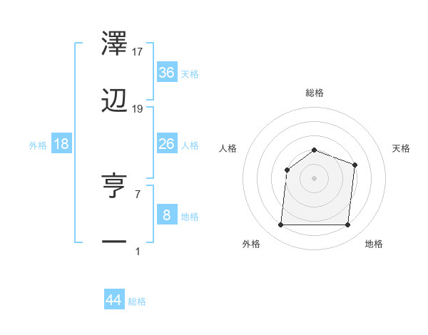 澤辺 亨一さんを姓名の画数から五運を鑑定