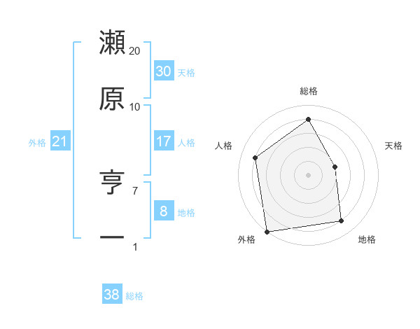 瀬原 亨一さんを姓名の画数から五運を鑑定