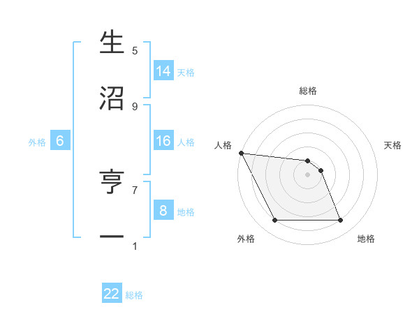 生沼 亨一さんの人格は16画の5点!