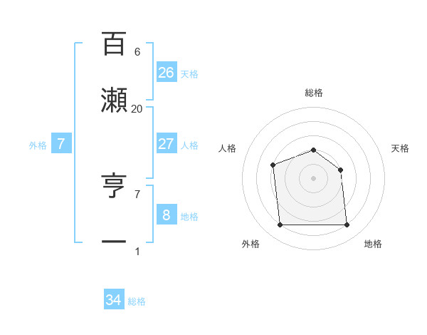 百瀬 亨一さんを姓名の画数から五運を鑑定