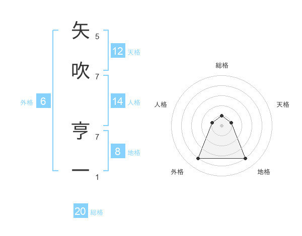 矢吹 亨一さんの総格は20画の1点!