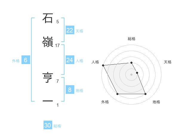 石嶺 亨一さんの外格は6画の4点!