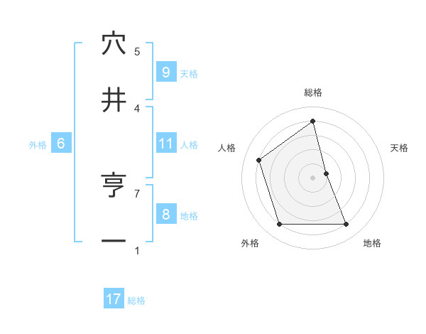 穴井 亨一さんを姓名の画数から五運を鑑定