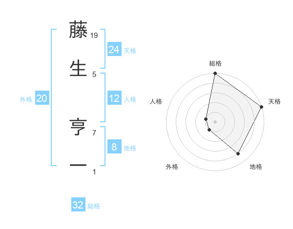 藤生 亨一さんの総格は32画の5点!
