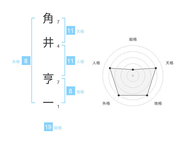 角井 亨一さんの地格は8画の4点!