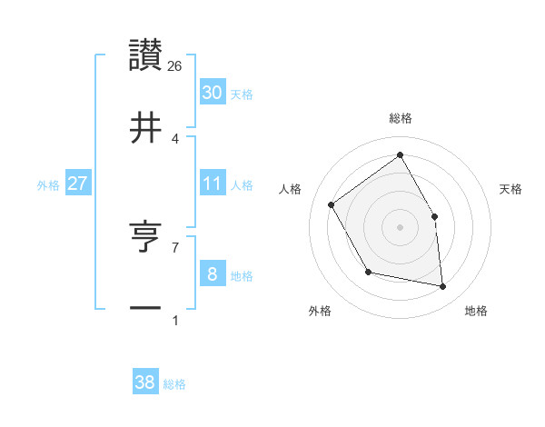 讃井 亨一さんを姓名の画数から五運を鑑定