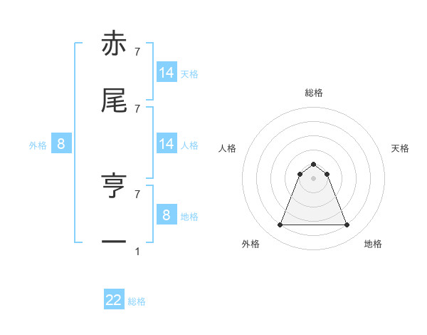 赤尾 亨一さんを姓名の画数から五運を鑑定