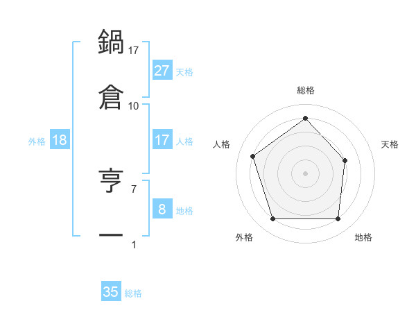 鍋倉 亨一さんを姓名の画数から五運を鑑定
