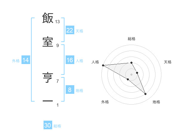 飯室 亨一さんを姓名の画数から五運を鑑定