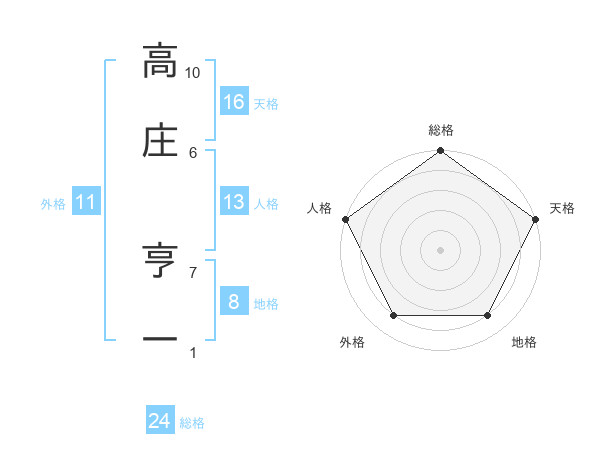 高庄 亨一さんの総格は24画の5点!