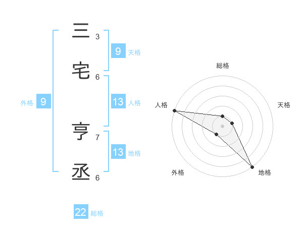 三宅 亨丞さんの地格は13画の5点!