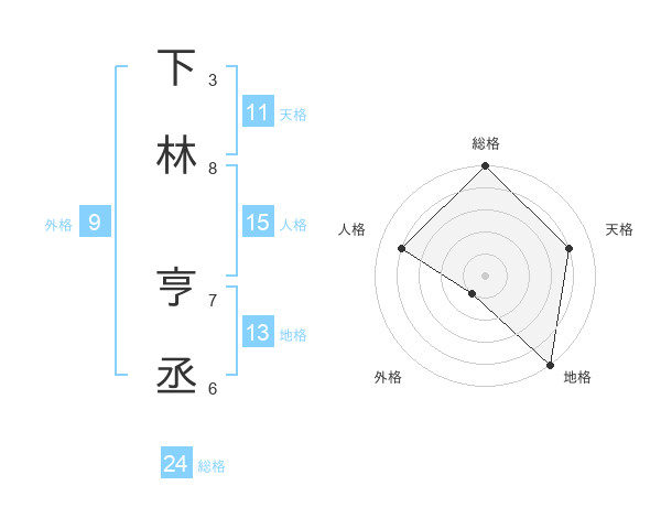 下林 亨丞さんの地格は13画の5点!