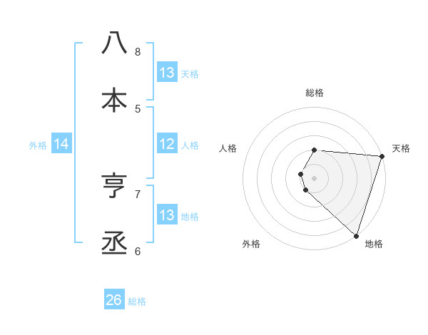 八本 亨丞さんの天格は13画の5点!