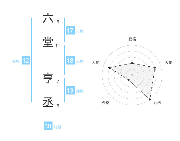 六堂 亨丞さんを姓名の画数から五運を鑑定